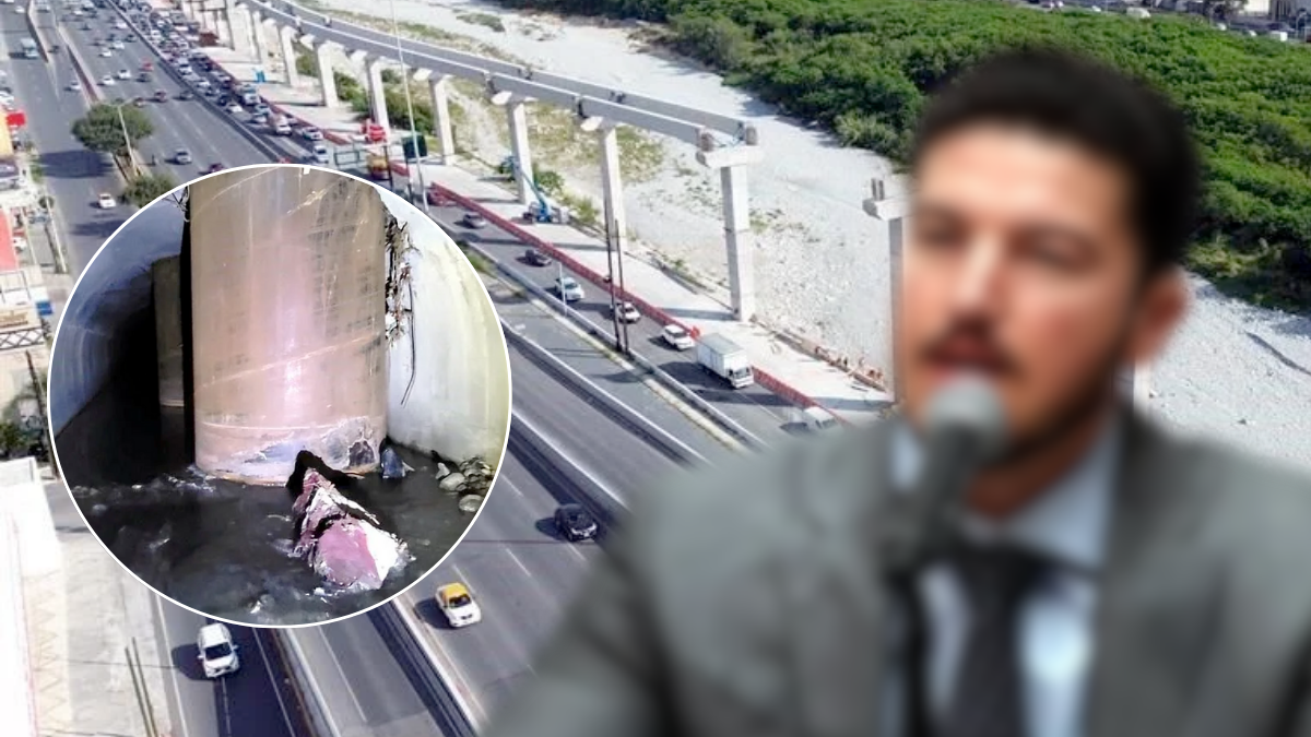 El colector afectado tiene cuatro metros de diámetro y se ubica a más de seis metros bajo tierra. Desde allí, recibe escurrimientos de distintas colonias del poniente y los conduce hasta el Río Santa Catarina. Pero ahora, con los pilotes atravesando su estructura, el sistema entero quedó comprometido.